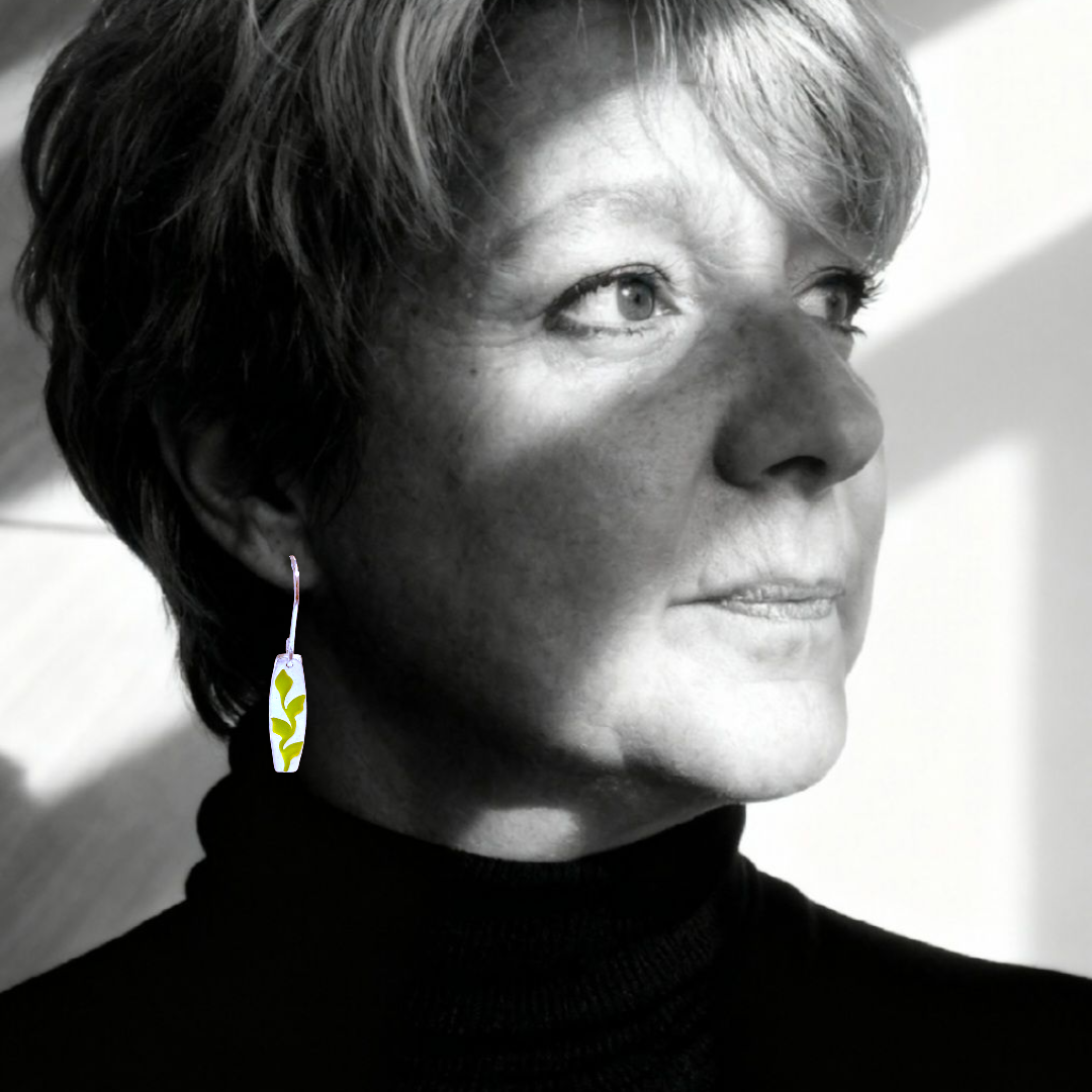 Chaque paire est réalisée en argent fin 999 selon la technique du champlevé, où les motifs de lianes sont modelés dans la pâte d'argent avant l'application de l'émail vert transparent. Cette méthode ancestrale permet de créer des reliefs qui donnent vie aux motifs végétaux sous l'émail cristallin.