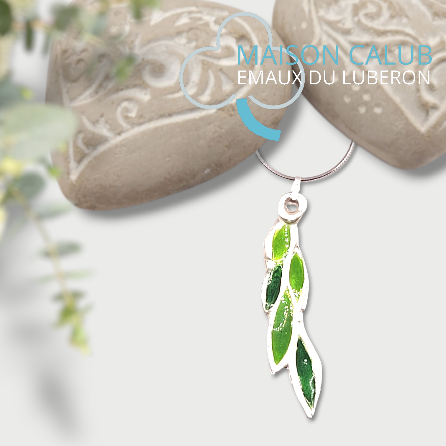 Pendentif LAURIER émail grand feu sur argent fin - Maison CALUB