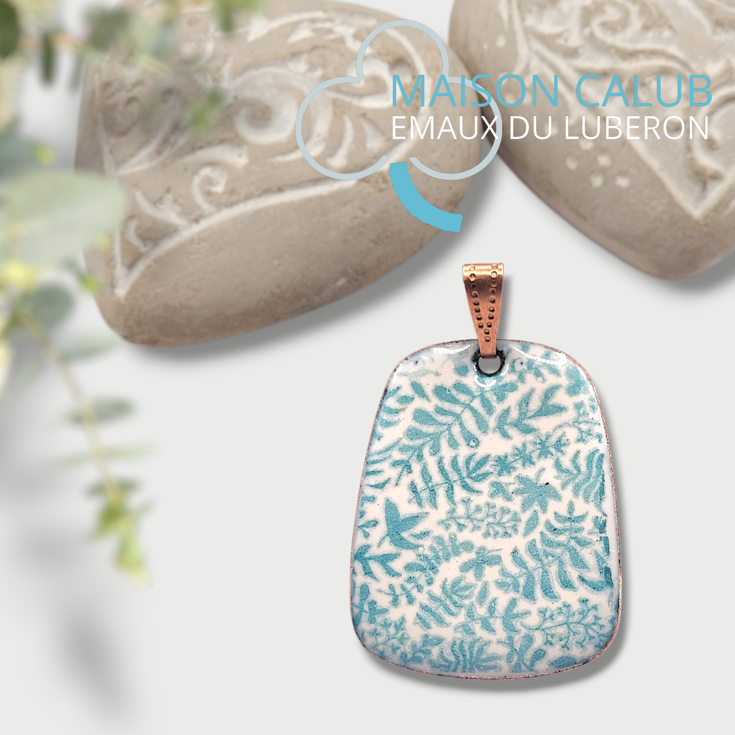 Pendentif émail sur cuivre - Petit Feuillage